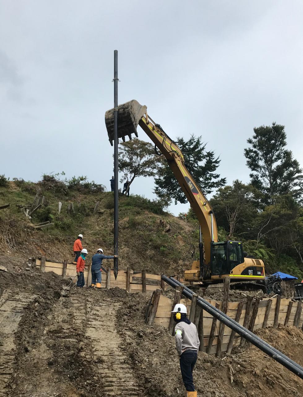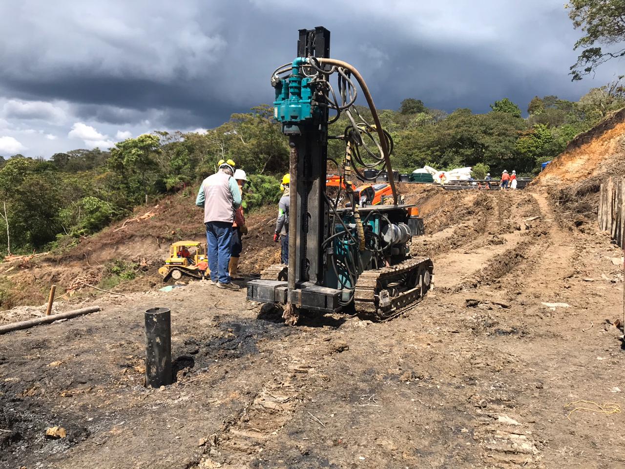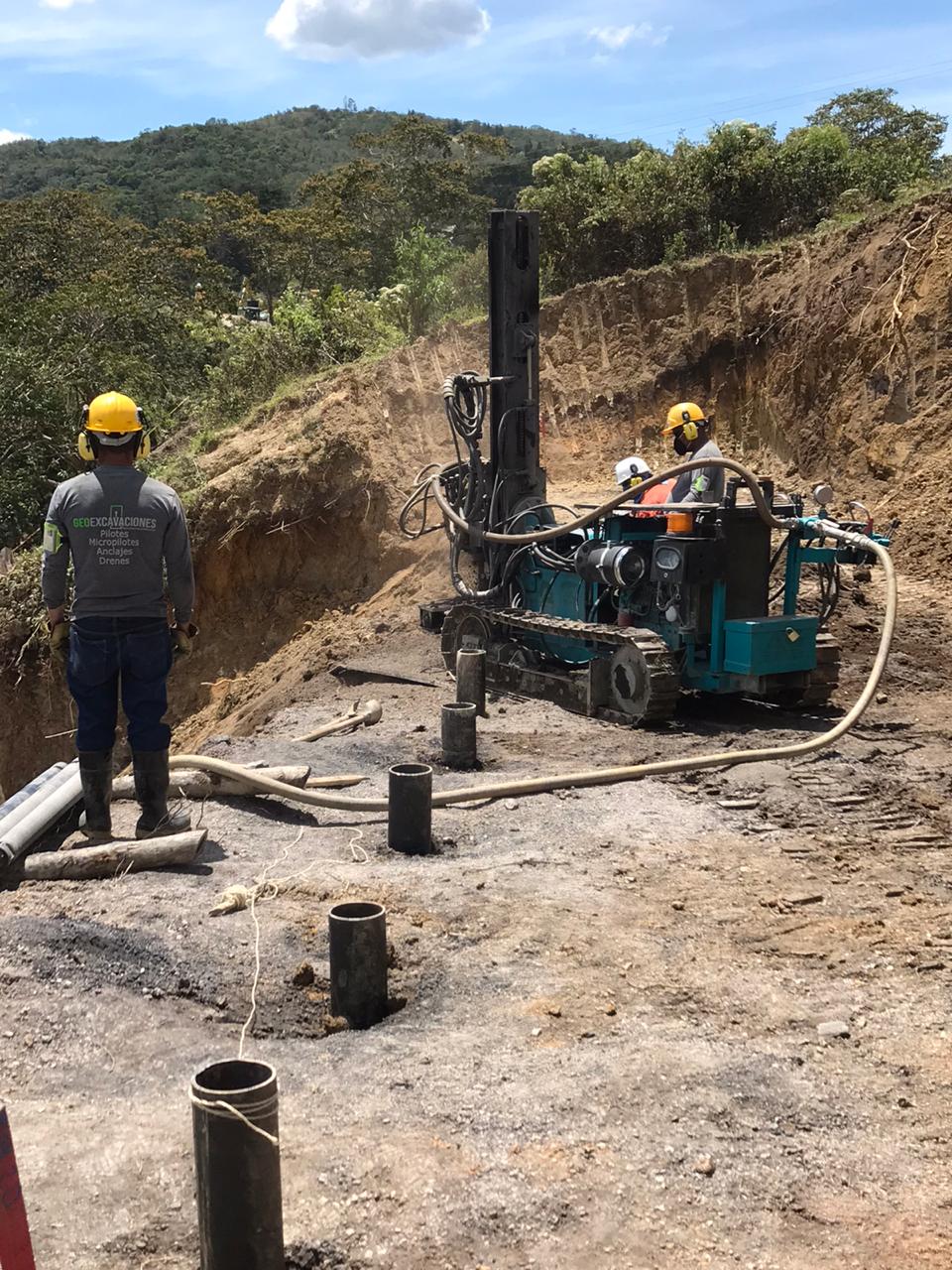 Instalación de micropilotes en tubería de acero de 6 pulgadas de diámetro, a una profundidad de 7 y 9 metros para la construcción de gasoductos.